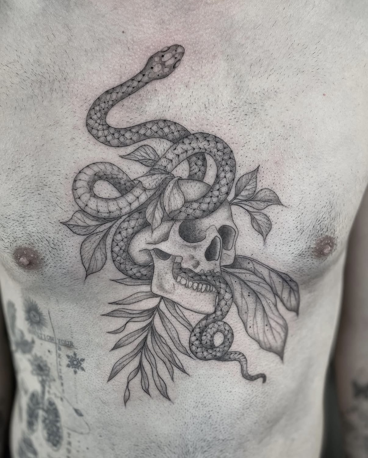 Wie ein Tattoo verheilt aussehen wird, hängt leider nicht nur vom Können des Tätowierers ab, sondern auch stark von deiner Haut. Gewisse Haut hat mehr die Tendenz Linien verblassen oder aufgehen zu lassen. Auf gewissen Hauttypen werden Tattoos mit der Zeit eher bläulich, grünlich oder gräulich, dies kann ich als Tätowiererin nicht beeinflussen. Ebenso nimmt gewisse Haut die Farbe bereits beim Stechen besser an als andere Haut.